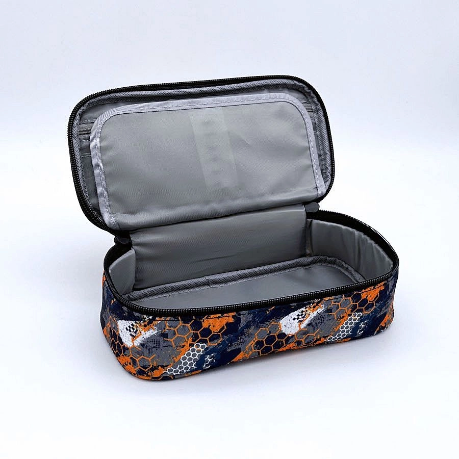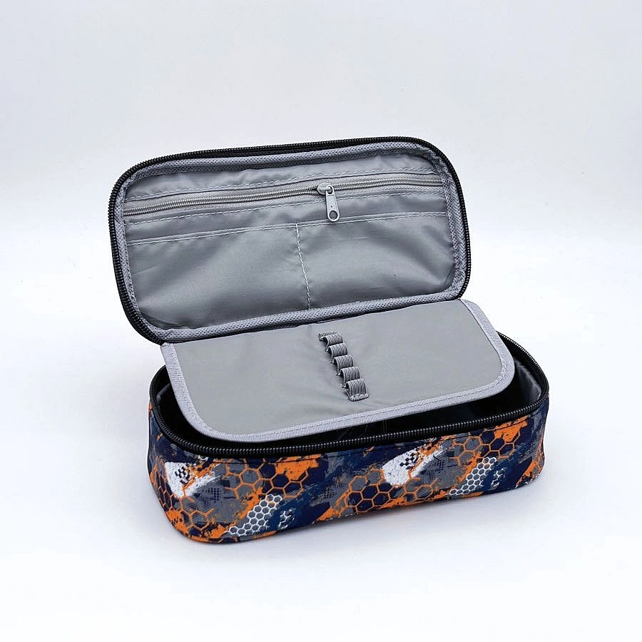 Ta etui s preklopom v privlačni oranžno-modri kombinaciji nudi vse, kar otroci potrebujejo za v šolo. Zaradi premišljene notranje razporeditve boste imeli pisala in drobnarije vedno pri roki in varno pospravljene.