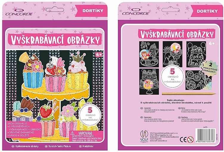 Praskanke Slaščice CONCORDE so odlična izbira za ustvarjalne trenutke doma ali na poti. Vsak list skriva barvno plast, ki jo zlahka razkrijete z nežnim praskanjem. Lahko odkrijete celotno površino, poudarite le izbrane podrobnosti ali ustvarite povsem svoje dekorativne vzorce.