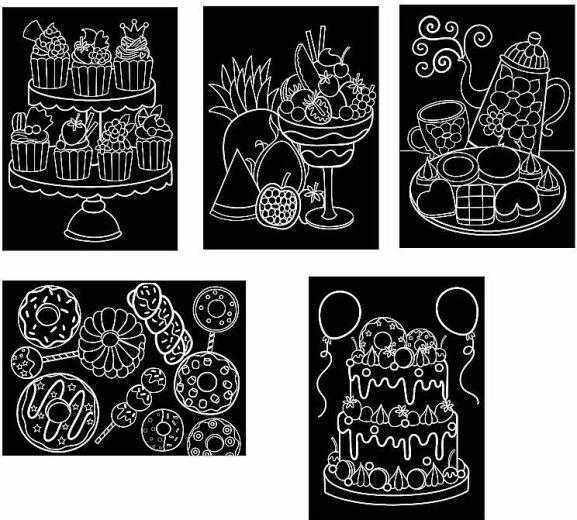 - 5 predtiskanih slik z veselimi motivi slaščic, od tega 2 biserni za prestižen učinek.
