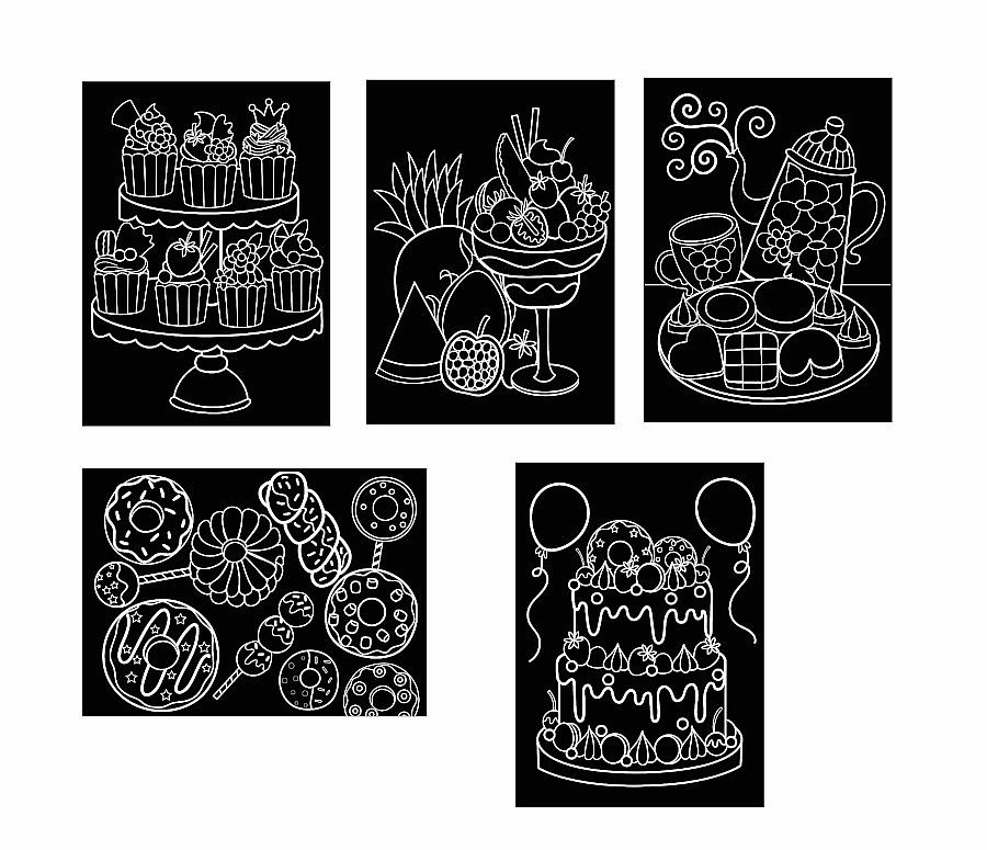 Odkrijte zabaven ustvarjalni komplet za otroke in odrasle: praskanke z motivom slaščic. Paket vsebuje 5 predtiskanih kartic, od tega sta 2 živo biserni. S priloženim lesenim praskalom lahko odkrivate skrite barve in ustvarjate izvirne vzorce povsem po lastni domišljiji.