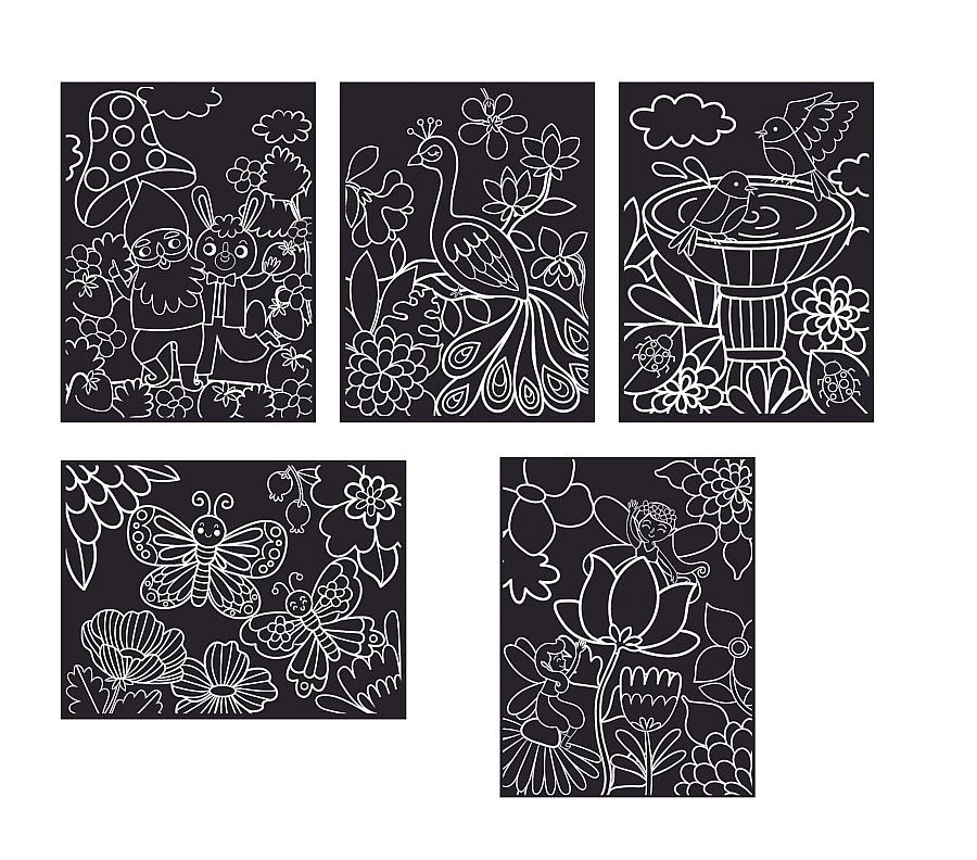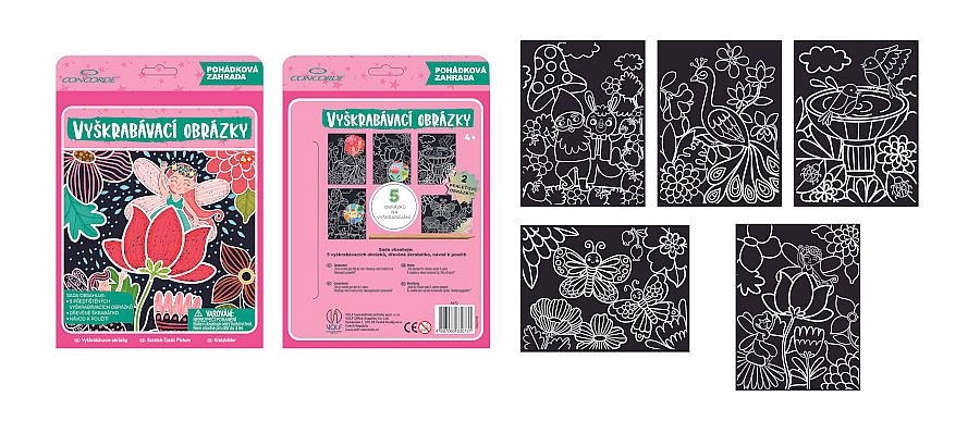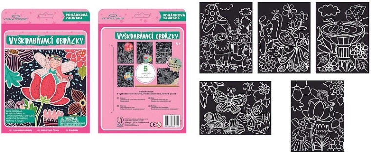 Set praskankarskih slik Concorde – pravljični vrt je idealen za otroke in odrasle, ki imajo radi ustvarjalno delo. Dovolj je, da vzamete priloženo leseno praskalo in postopoma razkrivate površine – rezultat so žive in domiselne slike s pravljičnimi motivi.