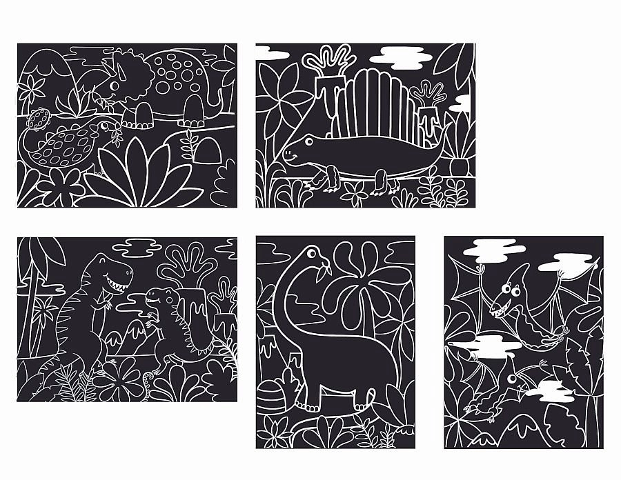 Ustvarjajte svoje kompozicije – lahko opraskate celoten motiv, poudarite le določene dele ali v sličice dodajate lastne vzorce. Aktivnost podpira ustvarjalnost, potrpežljivost in fino motoriko, hkrati pa je pomirjujoča dejavnost brez potrebe po lepilih ali barvah.