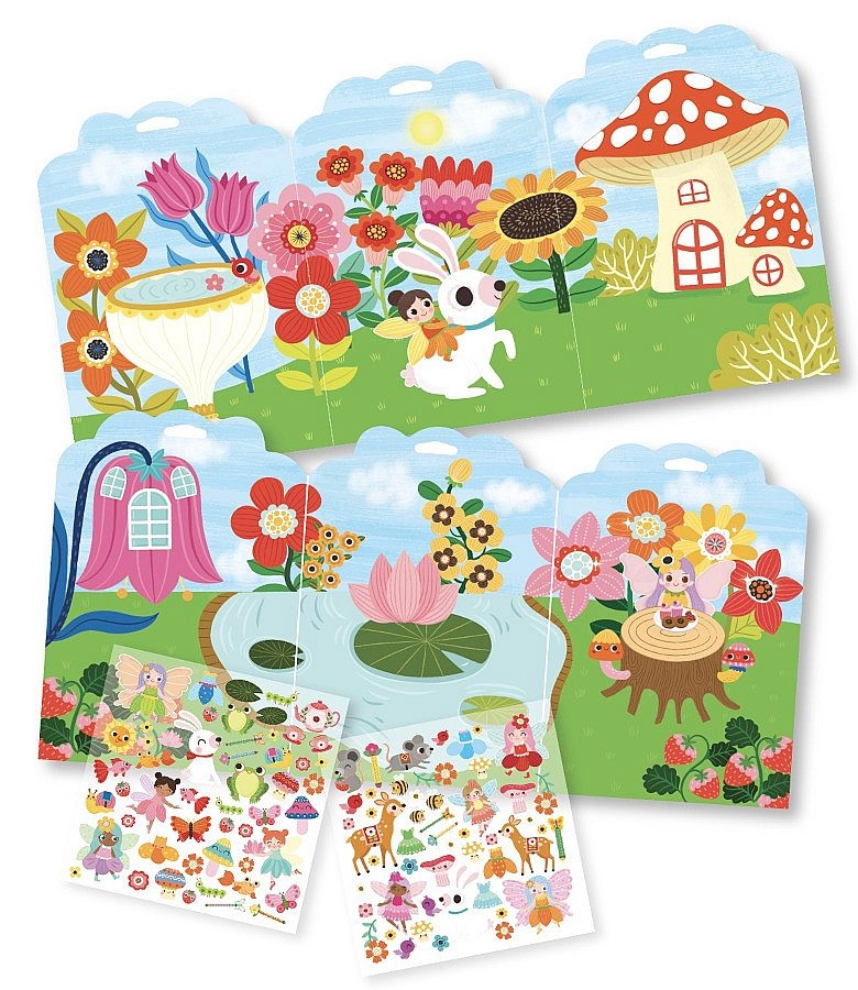 Del pakiranja je obojestranska zložljiva igralna podlaga, na kateri lahko otroci takoj začnejo ustvarjati prizore in zgodbe. Večkratno lepljenje spodbuja domišljijo, koordinacijo oko–roka in uči otroke dela s prostorom.