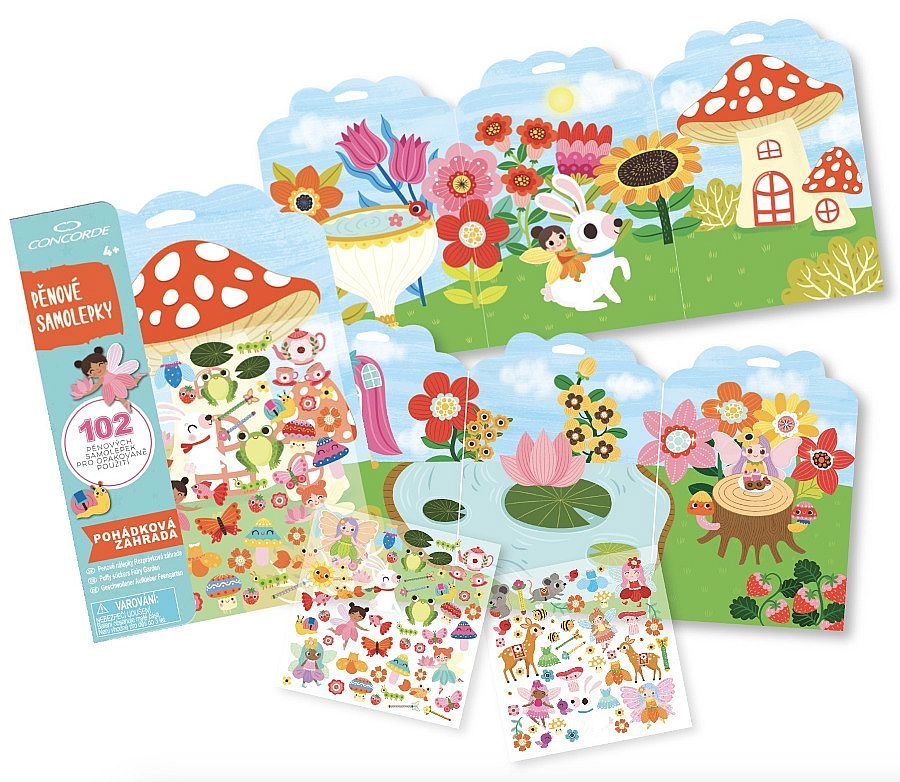 Ustvarite čaroben svet z barvitimi peneastimi nalepkami Concorde. Ta set z motivom pravljičnega vrta je zasnovan tako, da otroke zabava in hkrati podpira njihov razvoj. Nalepke je dovolj pritisniti na gladko površino – zahvaljujoč oprijemljivemu materialu držijo brez lepila in jih je mogoče znova in znova prestavljati.