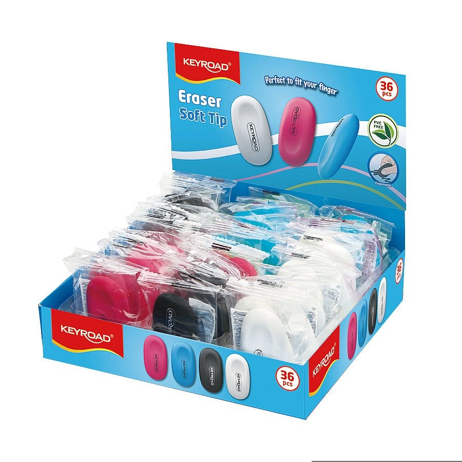 Odkrijte radirko Keyroad Soft Tip, ki združuje ergonomsko obliko za zanesljiv oprijem z nežnim in učinkovitim brisanjem sledi svinčnika brez nepotrebnega packanja papirja. Idealna za šolarje, študente in v pisarno.