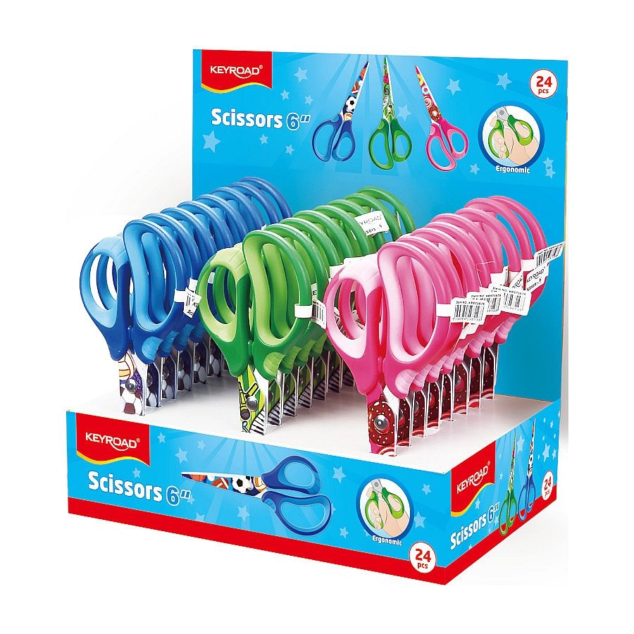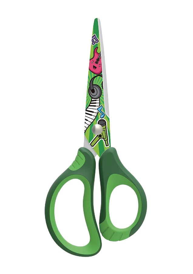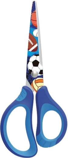 Praktične šolske škarje z zaobljeno konico in modernim potiskom so idealne za otroke in študente. Ponašajo se z ergonomskim mehkim ročajem za udoben oprijem, kakovostnimi jeklenimi rezili za čist rez ter varno zasnovo primerno za šolo. Dobavljive v mešanici 3 barv.