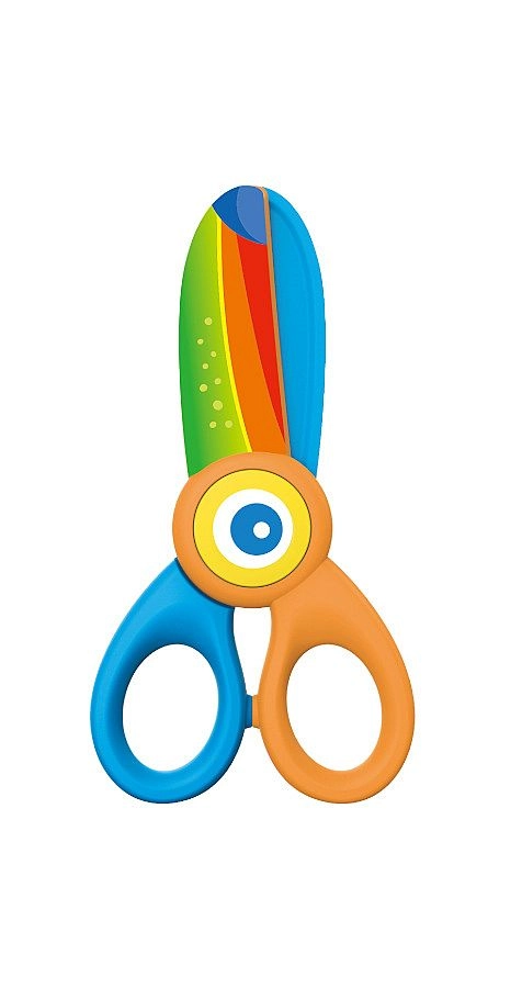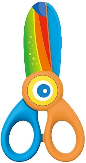 Vesele in varne otroške škarje za najmlajše z motivom tukana in dolžino 12,5 cm. Imajo plastično zasnovo, zaobljeno konico in varnostno konstrukcijo brez kovinskega rezila, ki je idealna za prve poskuse rezanja. Ponuja udoben oprijem in je dobavljena na blistru.