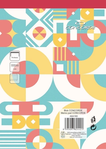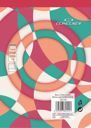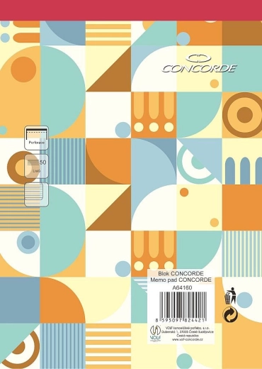 Praktičen črtan blok CONCORDE v formatu A4 s perforacijo ponuja 50 listov kakovostnega brezlesnega belega papirja z gramatura 55 g/m². Širina črt 8 mm je idealna za pregledno pisanje, lepljena vezava omogoča enostavno trganje, rdeč hrbet pa na prvi pogled razlikuje črtani tip.