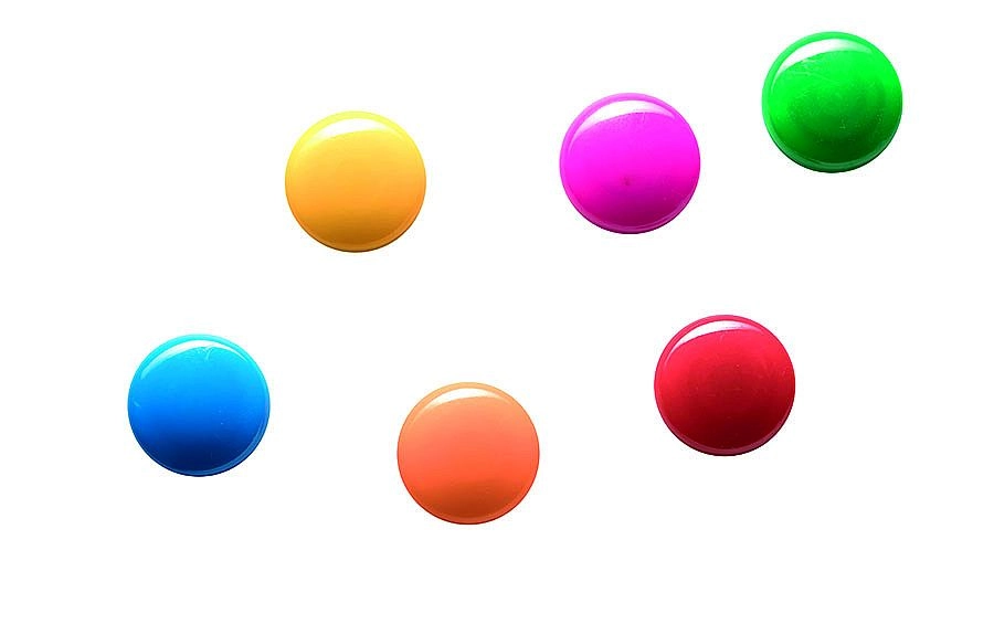 Zaobljena, sijajna gumbna oblika je prijazna do površin in udobna v roki. Magneti so dobro vidni tudi na daljavo.
