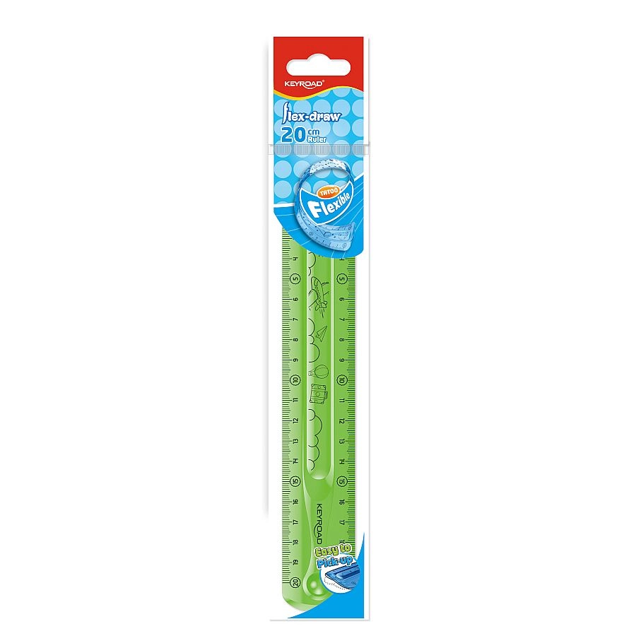 Iščete ravnilo, ki veliko zdrži? KEYROAD Flexi je prožno in prozorno ravnilo z dolžino 20 cm, ki zaradi svoje zasnove prenese vsakodnevno uporabo brez pokanja. Je brez ftalatov, zato je varno za otroke in odrasle.
