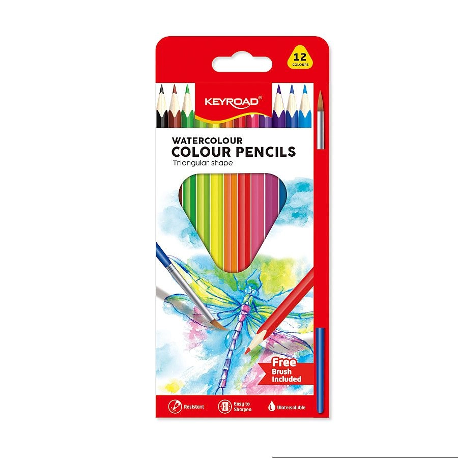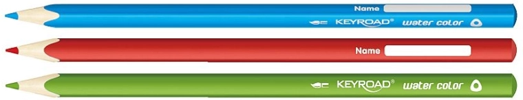 Akvarelne barvice KEYROAD združujejo klasično risanje in slikanje. Narisani motiv preprosto razmažite s čopičem in kapljico vode ter ga spremenite v enakomerne barvne ploskve z nežnimi prehodi. Zaradi odpornega jedra in kakovostnega lesa se barvice manj lomijo in se zlahka šilijo.