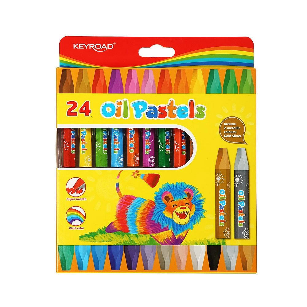 Odkrijte ustvarjalno svobodo z naborom oljnih pastelov KEYROAD – 24 bogatih in obstojnih barv za šolo, atelje in domače ustvarjanje. Pasteli se nanašajo gladko in enakomerno, zlahka se mešajo in omogočajo bogate barvne prehode.
