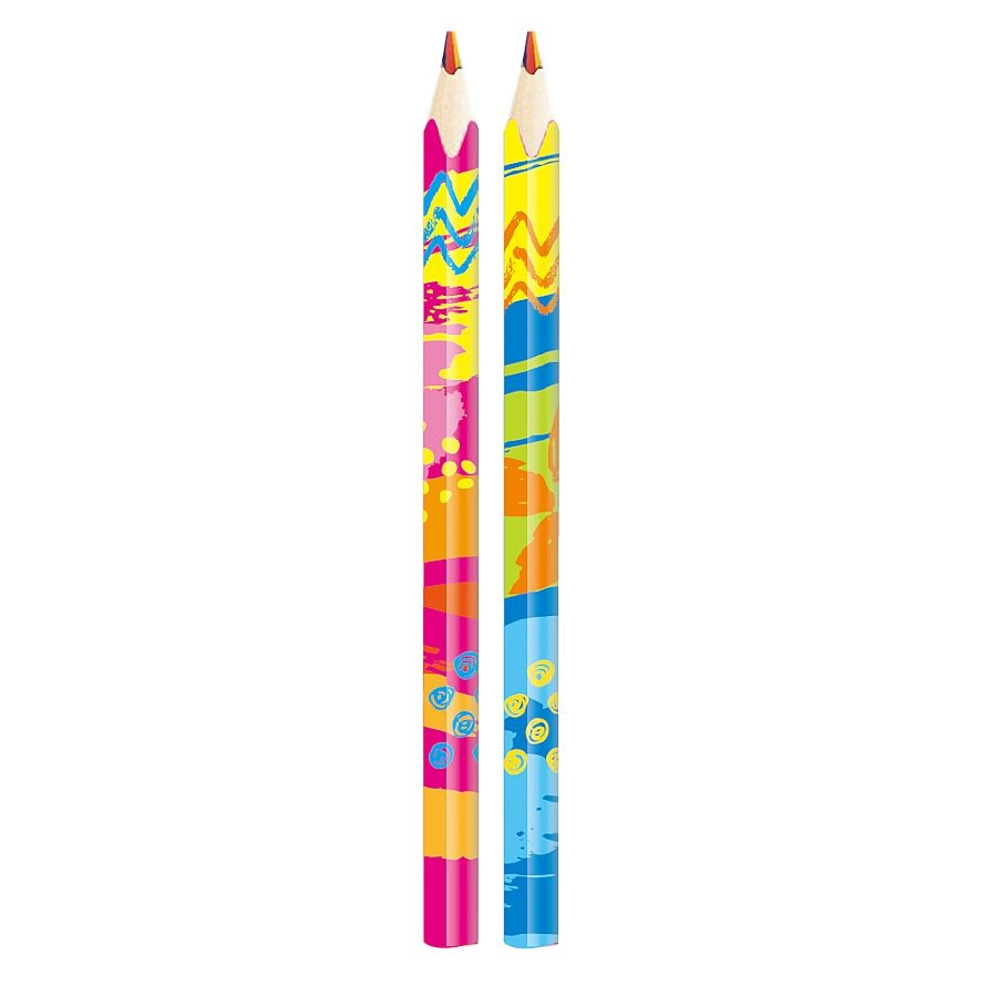 Odkrijte ustvarjalni svet z jumbo barvicami KEYROAD Magic z večbarvnim jedrom. Vsaka barvica vsebuje 4 odtenke v enem svinčniku (modra, rdeča, rumena, zelena), ima ergonomsko trikotno obliko za udoben oprijem in premer mine 5 mm. Idealne so za barvanje večjih površin in igrivo senčenje, kjer se barva spreminja že z zavrtanjem konice. Pakiranje vsebuje 2 kosa na blistru.