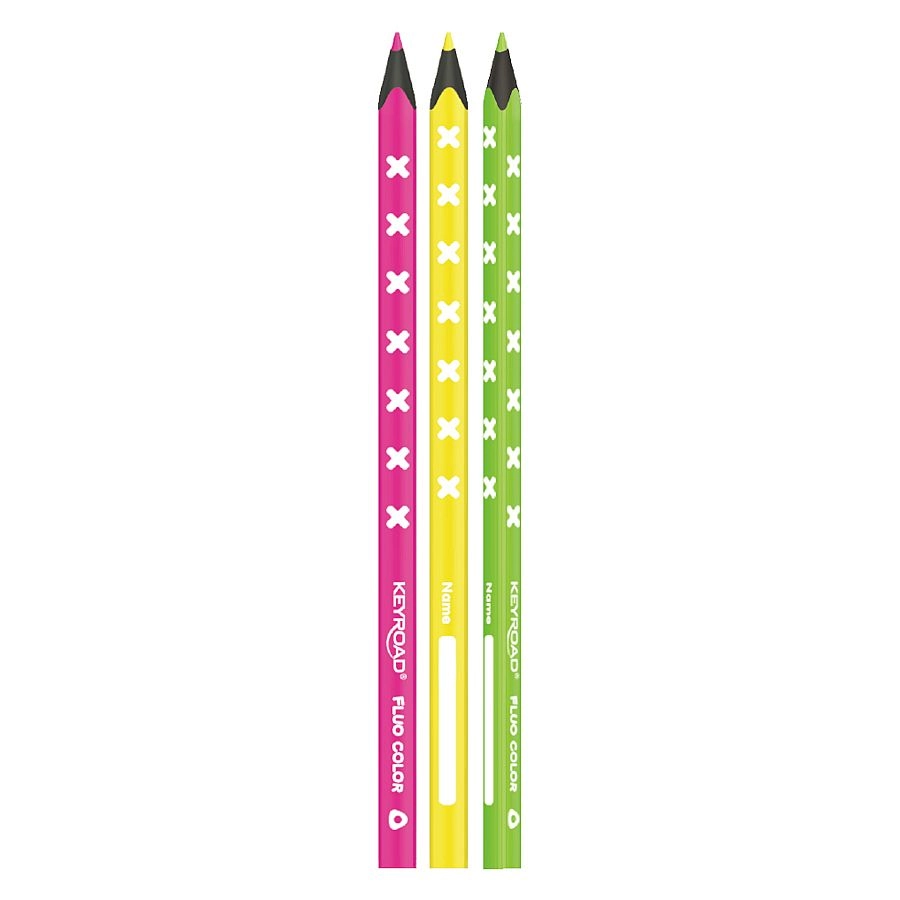 Odkrijte neonske trikotne barvice KEYROAD v setu 6 živahnih barv. Imajo mehko 3 mm jedro za gladko risanje, odpornost proti lomljenju, izdelane so iz kakovostnega črnega lesa in odlično izstopajo na temnem ozadju. Zlahka se širijo in ponujajo prostor za ime na ohišju barvice.