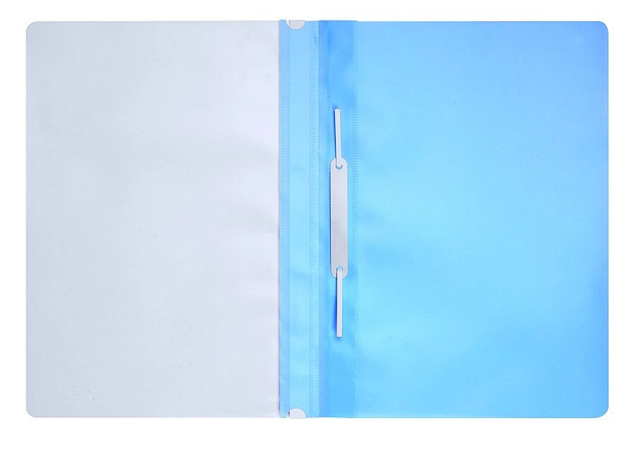 Praktičen hitrovezni fascikel v formatu A4 za enostavno shranjevanje in predstavitev dokumentov. Združuje prozorno sprednjo stran za hitro orientacijo in pastelno modro zadnjo stran za eleganten videz. Trpežen polipropilen ščiti vsebino, obojestranski hrbtni napisni trak pa olajša opis in organizacijo.