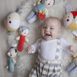 Mehka tekstilna ropotuljica v obliki medvedka dojenčkom nudi nežne zvočne dražljaje in prijeten, varen oprijem. Zahvaljujoč organskim materialom je primerna tudi za občutljivo kožo ter podpira razvoj fine motorike in senzoričnega zaznavanja.