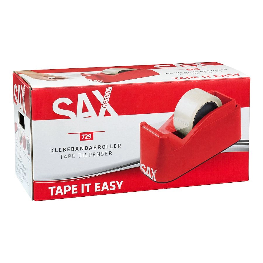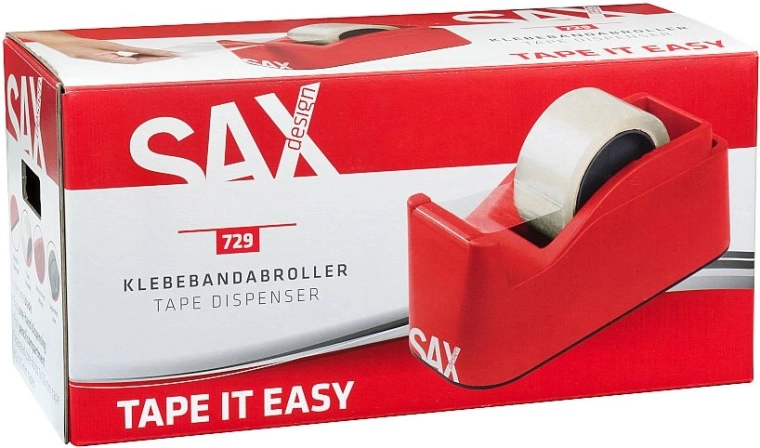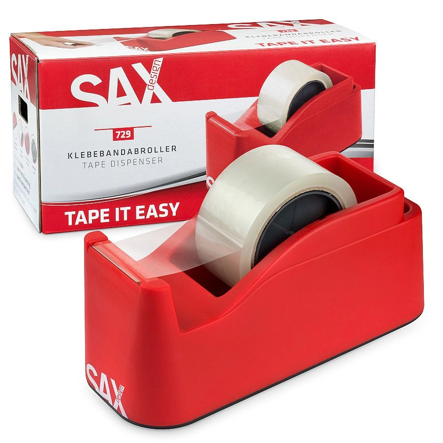 Namizni odvijalec traku SAX design 729 je idealen za pisarno, skladišče in gospodinjstvo. Zaradi masivne izvedbe in teže 2,2 kg ostane trdno na mestu, zato trak udobno odtrgate s samo eno roko. Praktična zasnova omogoča uporabo enega širokega traku 50 mm ali dveh ožjih trakov 25 mm, z možnostjo izbire med dvema višinskima ravnema vpetja za tekoče odvijanje.