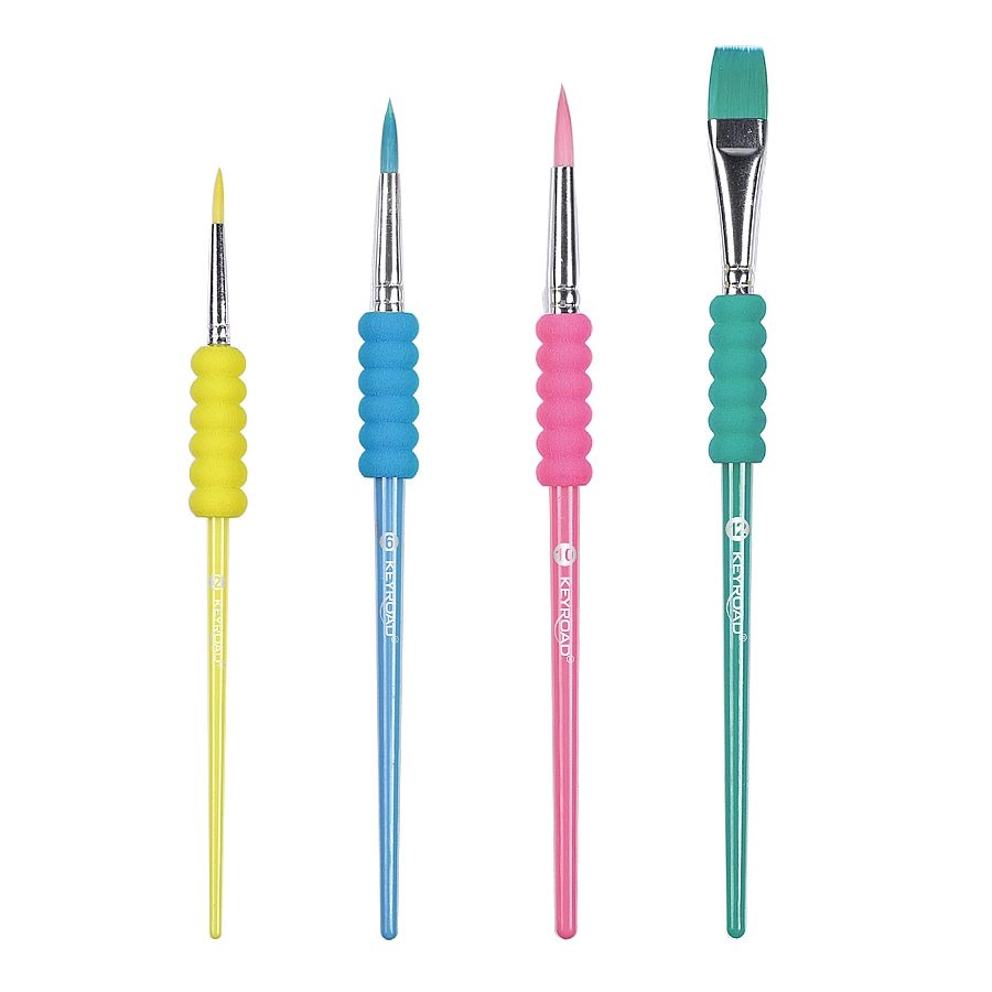Komplet čopičev KEYROAD Pastel nudi udobje in nadzor pri slikanju zahvaljujoč ergonomskemu, mehkem penastem oprijemu. Sintetična vlakna ohranjajo obliko, enakomerno sproščajo barvo in se enostavno čistijo, zato so odlična izbira za akvarel, tempero, akril in šolske projekte.