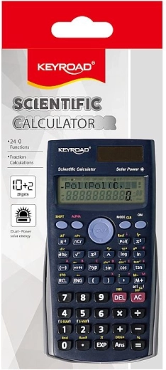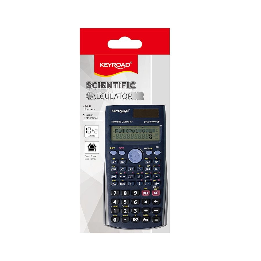 Znanstveni kalkulator Keyroad združuje širok nabor funkcij in vzdržljivo zasnovo. Zahvaljujoč dvojnemu napajanju zanesljivo deluje v katerikoli svetlobnih pogojih in pri dnevni svetlobi varčuje z baterijo. 10-mestni zaslon zagotavlja jasen in natančen prikaz rezultatov, vključno z dvema decimalnima mestoma.