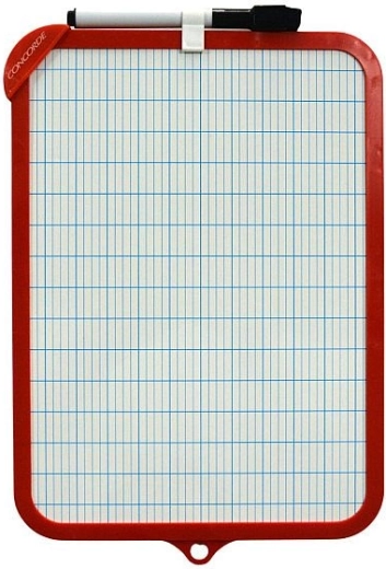 Praktična dvostranska tabla za otroke in odrasle z merami 19 × 29 cm in rdečim okvirjem. Ponuja eno stran z natisnjenimi črtami in kvadratki ter drugo popolnoma gladko. Idealna je za vadbo pisanja, risanja in reševanja nalog. Preprosto se briše s pomočjo gobice ali krpice, razvija ustvarjalnost in fino motoriko ter ima ušesce za obešanje. Del seta je marker z gobico in samostojna gobica.