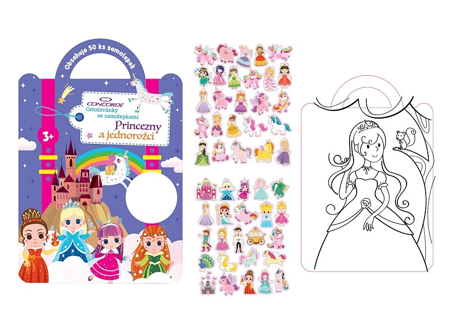 Odkrijte svet poln barv in domišljije s pobarvankami CONCORDE – Princese in samorogi. Otroci lahko pobarvajo pravljične prizore in jih dopolnijo s samolepkami, kar na zabaven način spodbuja fino motoriko, potrpežljivost in ustvarjalno razmišljanje.