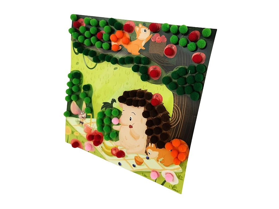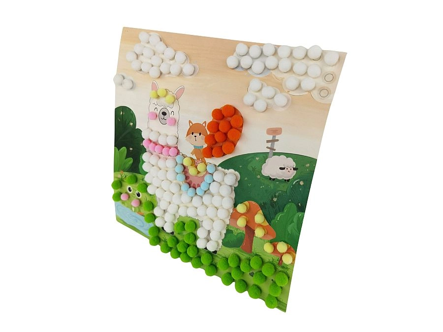 Samolepilne podlage olajšajo delo brez potrebe po lepilu in ohranjajo delovno površino čisto. Barviti cofki vabijo k dotiku, podpirajo čutno zaznavanje ter spodbujajo osredotočenost in natančnost.
