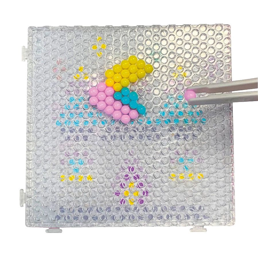 - Podlaga 11 × 11 cm, držalo za perlice, šablona, razpršilo za vodo, 380 perlic