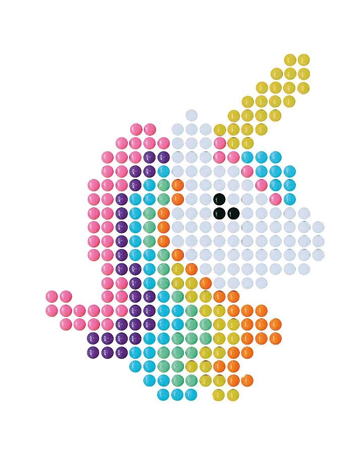 Ta ustvarjalni komplet je idealen za otroke, ki imajo radi ustvarjanje in domišljijo. Po priloženi šabloni zlahka sestavite ljubkega samoroga ali pa ustvarite lastne motive. Zaradi vodne tehnologije je delo s perlicami varno, čisto in preprosto – brez lepila in brez likanja.