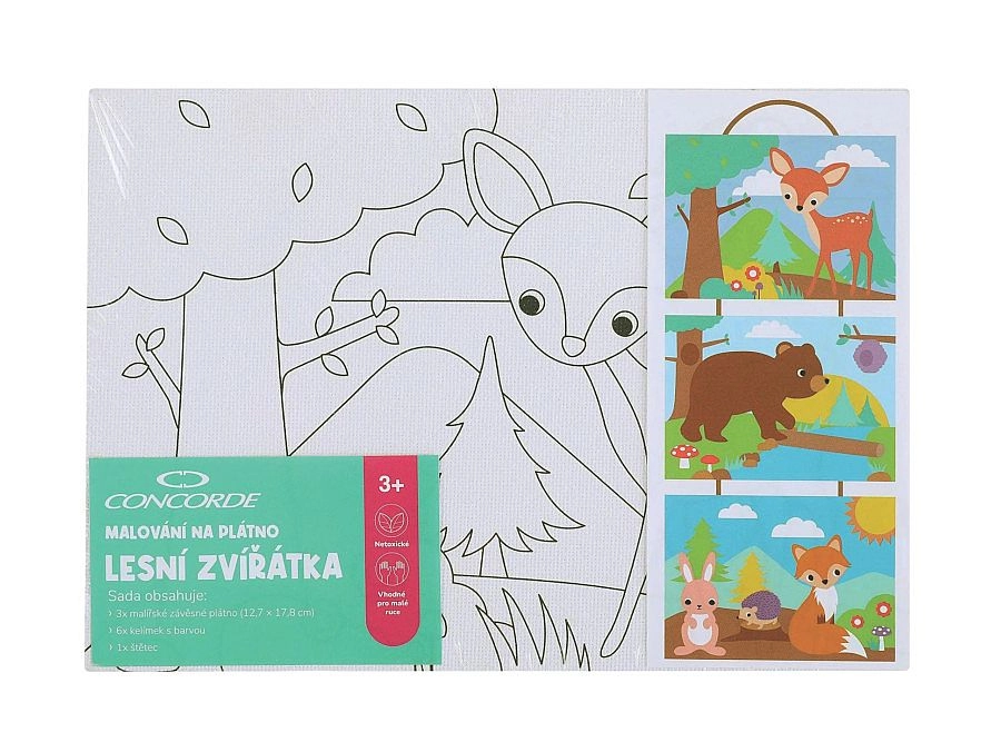 Komplet za slikanje na platno CONCORDE z motivi gozdnih živalic je odlična izbira za ustvarjanje doma, darila in popoldneva polnega zabave. Zaradi predlog je primeren za začetnike, razveselil pa bo tudi otroke, ki radi ustvarjajo po svoje. Končane slike preprosto obesite in z njimi okrasite otroško sobo.