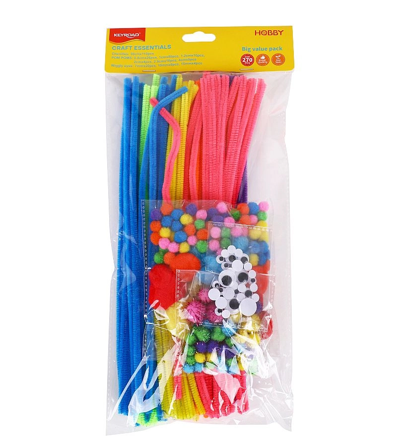 Praktičen komplet s cofki, kosmatimi žičkami in samolepilnimi očmi v številnih barvah in velikostih. Idealni začetek za desetine ustvarjalnih idej.