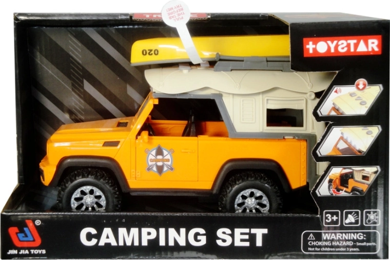 Odkrijte otroško terensko vozilo s kajakom na strehi, idealno za igranje scenarijev kampiranja in pustolovskih odprav. Igrača deluje na baterije tipa AG13, ki so priložene v pakiranju, zato se lahko otroci igrajo takoj po odprtju. Vizualno privlačna izvedba z okenskim pakiranjem je odlična tudi kot darilo.