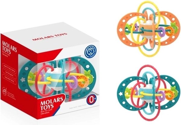 Prisrčna otroška ropotuljica in prepletanka za najmlajše spodbuja tip zahvaljujoč udobnim ročajem ter razvija vid s pestrimi barvami. Primerno od prvih dni življenja, dobavljeno v kartonski embalaži. Na voljo je več barvnih različic, ki so izbrane naključno. Cena je za 1 kos.