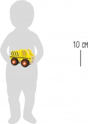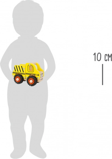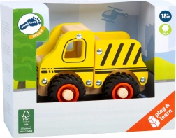 To kompaktno gradbeno vozilo iz certificiranega FSC lesa navduši vsakega malega graditelja. Zaradi gumiranih koles se tiho in zanesljivo premika po različnih površinah, hkrati pa je varno za uporabo v otroški sobi. Naravna kombinacija lesa in izrazite rumene barve spodbuja radovedno igro in razvoj veščin.