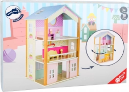 Odkrijte trietažno vrtljivo palačo, ki navduši s premišljeno zasnovo in stabilno konstrukcijo. Vrtljiva osnova omogoča enostaven dostop do vseh prostorov in tekoče menjavanje igralnih prizorov. Zaradi bogate opreme in natančne izdelave je hiška odlična izbira za vsakodnevno ustvarjalno igro.