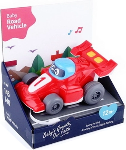 Ljubek dirkalni avtomobilček z očmi bo razveselil vsakega malčka. Ponuja svetlobne in zvočne učinke, enostavno upravljanje in varno izvedbo za otroke od 12 mesecev. Igrača deluje na baterije AG13 in je dobavljena v kartonski škatlici.