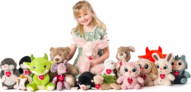 Pliškot ima okoli vratu ikonični rdeči srček, tako kot njegovi prijatelji iz skupine Lumpinci. Zahvaljujoč kompaktni višini 17 cm je odličen v posteljici, vozičku in nahrbtniku. Žametno mehak otip in prijazen videz zagotavljata, da ga bodo otroci vzljubili takoj.
