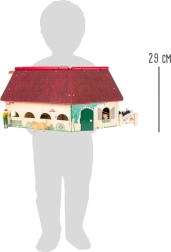 Ta lesena kmetija je zasnovana tako, da spodbuja otrokovo domišljijo. Zahvaljujoč podrobnostim, kot sta odpirajoča se streha in drsna vrata, si lahko otroci uprizarjajo različne kmečke scenarije.