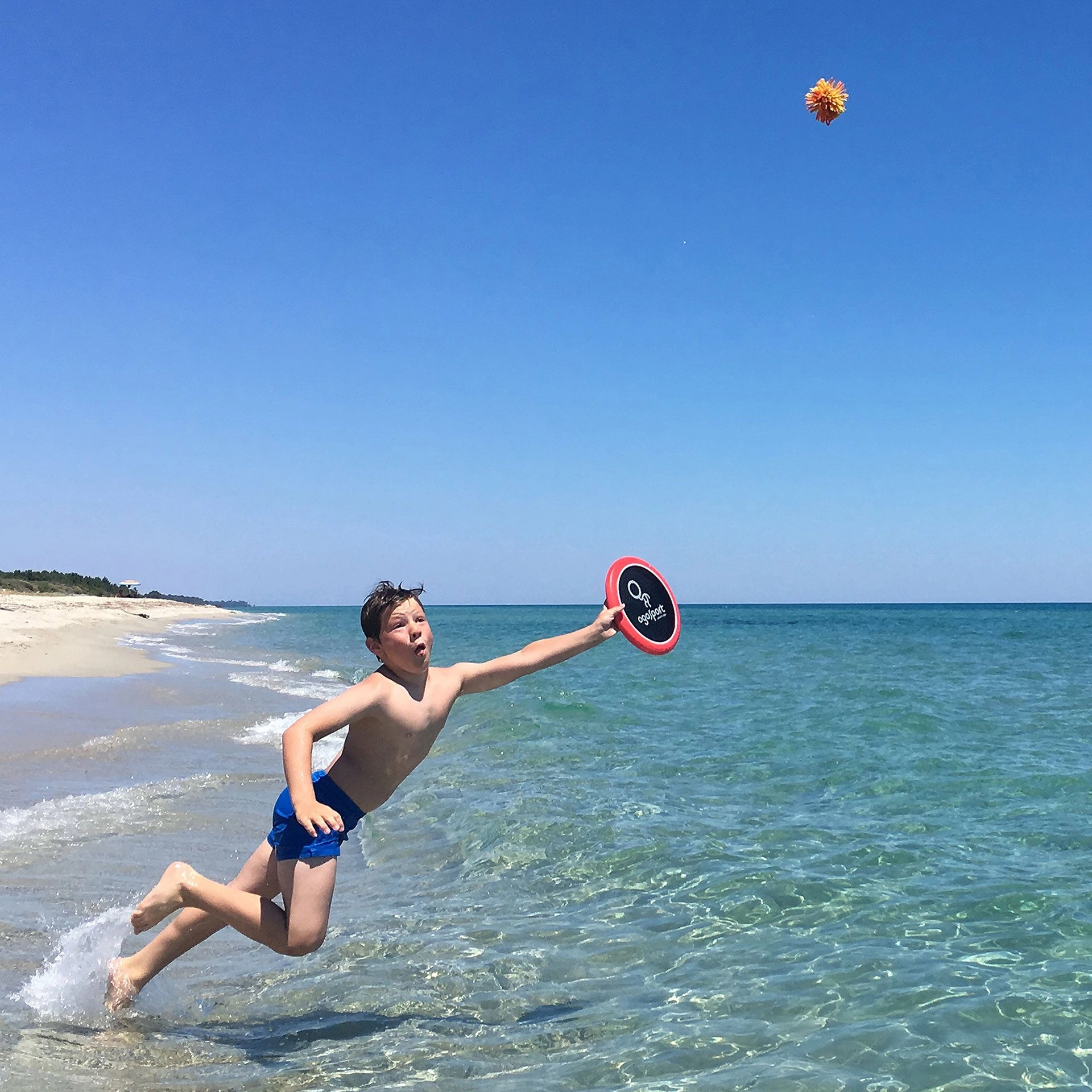 Uživajte v aktivni zabavi na prostem s kompletom Ogo znamke Schildkröt – dva odbijajoča diska z elastično mrežico za trampolinski učinek in dolge lete žogice. Zaradi penastega oprijema so diski udobni in varni, idealni za plažo, park in vrt. Vključuje cofkasto žogico, ki se po pristanku ne odkotalí in odlično podpira koordinacijo oko–roka.