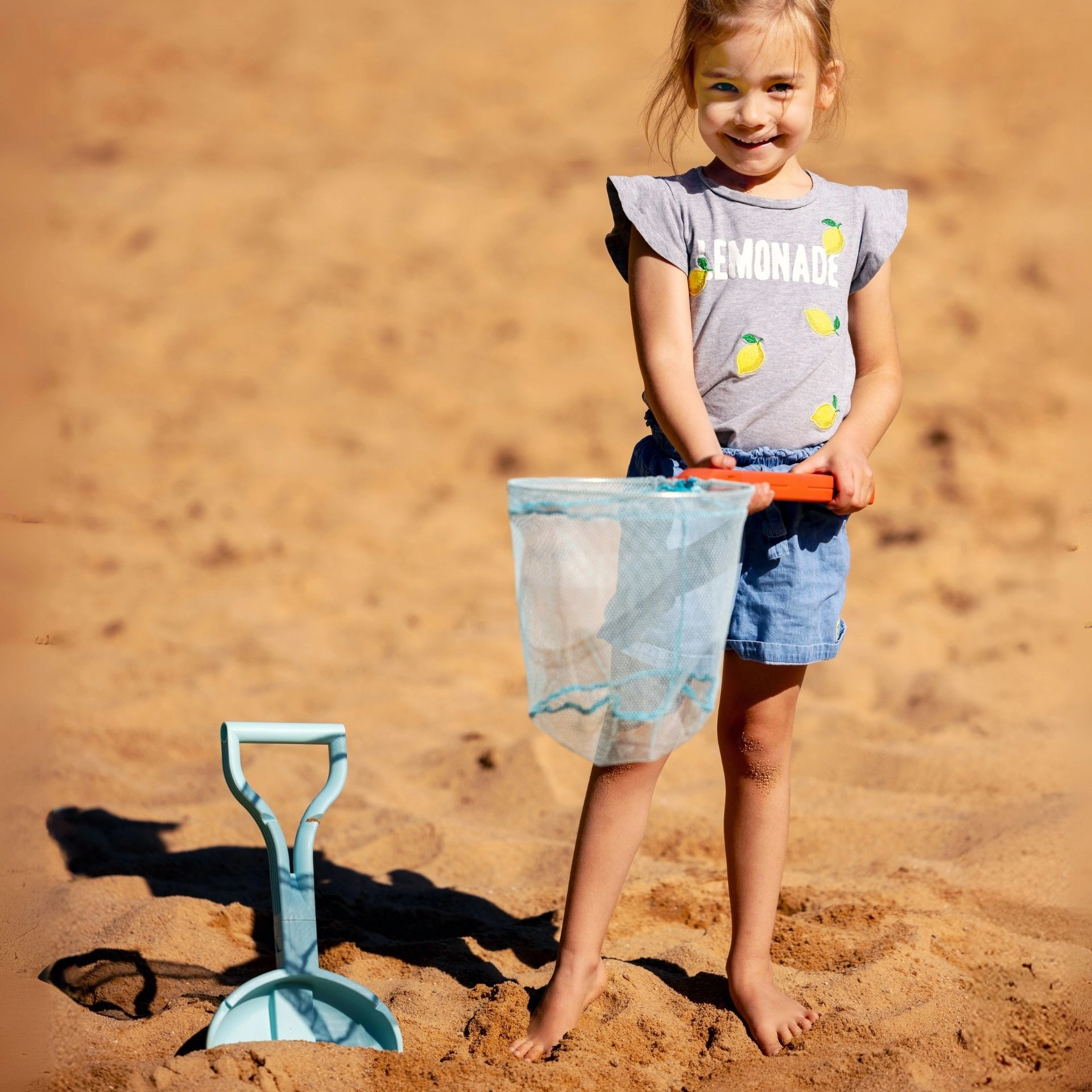 Lahka, a vzdržljiva konstrukcija je zasnovana za dolge ure igre. Kompaktna zložljiva zasnova omogoča, da set vzamete kamor koli – v nahrbtnik ali plažno torbo. Odlično za otroke od 3 let, ki želijo graditi peščene gradove in raziskovati naravo ob vodi.