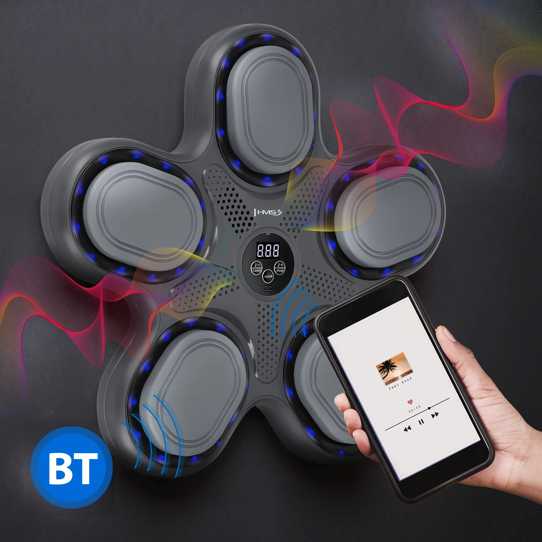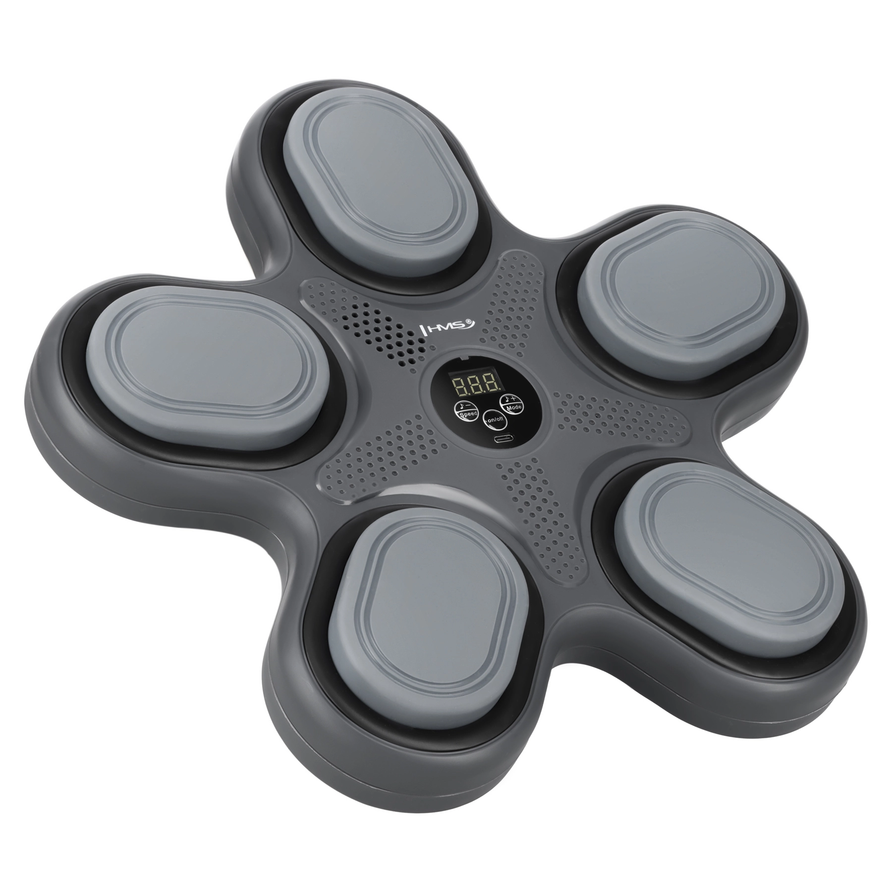 Pospešite svoje reflekse in si popestrite trening z elektronskim boksarskim tarčnim sistemom HMS TB11. Edinstvena zvezdasta zasnova z LED osvetlitvijo, Bluetooth povezavo in vgrajenim zvočnikom združuje kondicijski trening z glasbo. Pet aktivnih območij z LED osvetlitvijo vas izzove k hitrim reakcijam, natančnim zadetkom in izboljšanju koordinacije roka–oko. V paketu prejmete tudi MMA rokavice za udoben in varen trening.