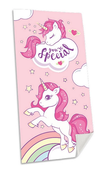 Poživite vsak dan s čudovito brisačo s samorogom. Barvit motiv z mavrico, oblačkom in napisom You're special (Poseben/posebna si) doda kopalnici in plaži igriv slog. Zahvaljujoč univerzalnim meram je odlična tako za otroke kot za odrasle.