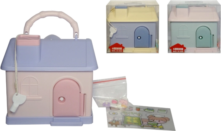 Ljubek hranilnik v obliki hišice pomaga otrokom varčevati svoje prve prihranke in razvijati navado varčevanja. Ima zaklepanje na ključek za varnost kovancev, dekorativni ročaj za enostavno prenašanje in je dobavljen v živahnih barvah, izbranih naključno. Primeren za otroke od 3 let.