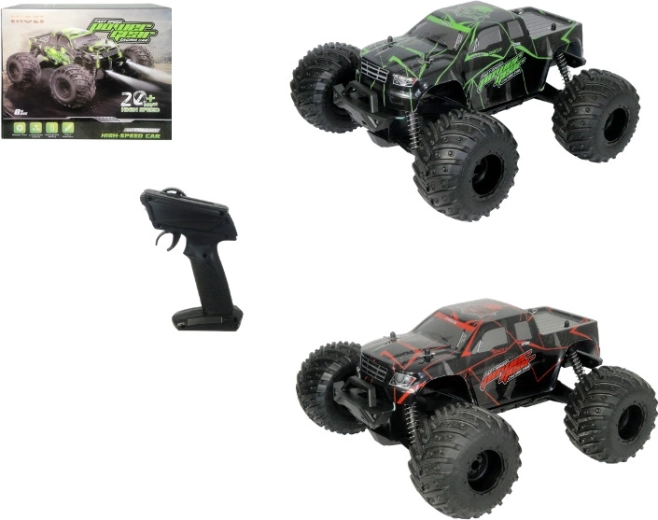Doživite adrenalinsko vožnjo s tem terenskim RC vozilom, ki doseže hitrost do 20 km/h in se upravlja z daljinskim upravljalnikom. Vozilo se premika v vse smeri (naprej/nazaj, desno/levo), obvladuje neravnine in je pripravljeno na zabavo takoj po odvijanju zahvaljujoč vgrajenemu Li-ion akumulatorju. Napajanje upravljalnika zagotavljajo običajne AA baterije (niso vključene). Različne barvne različice, pakirano v škatli.