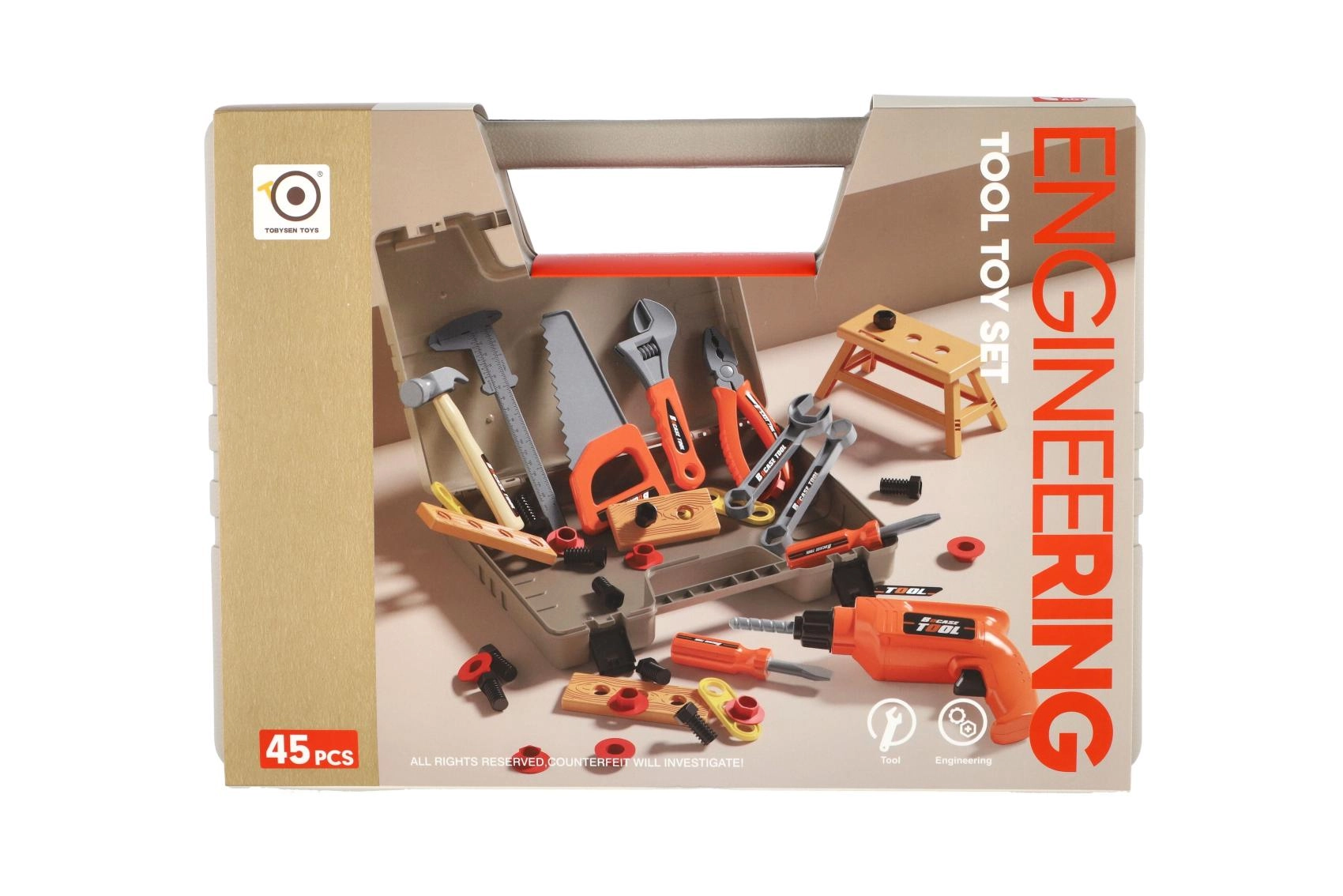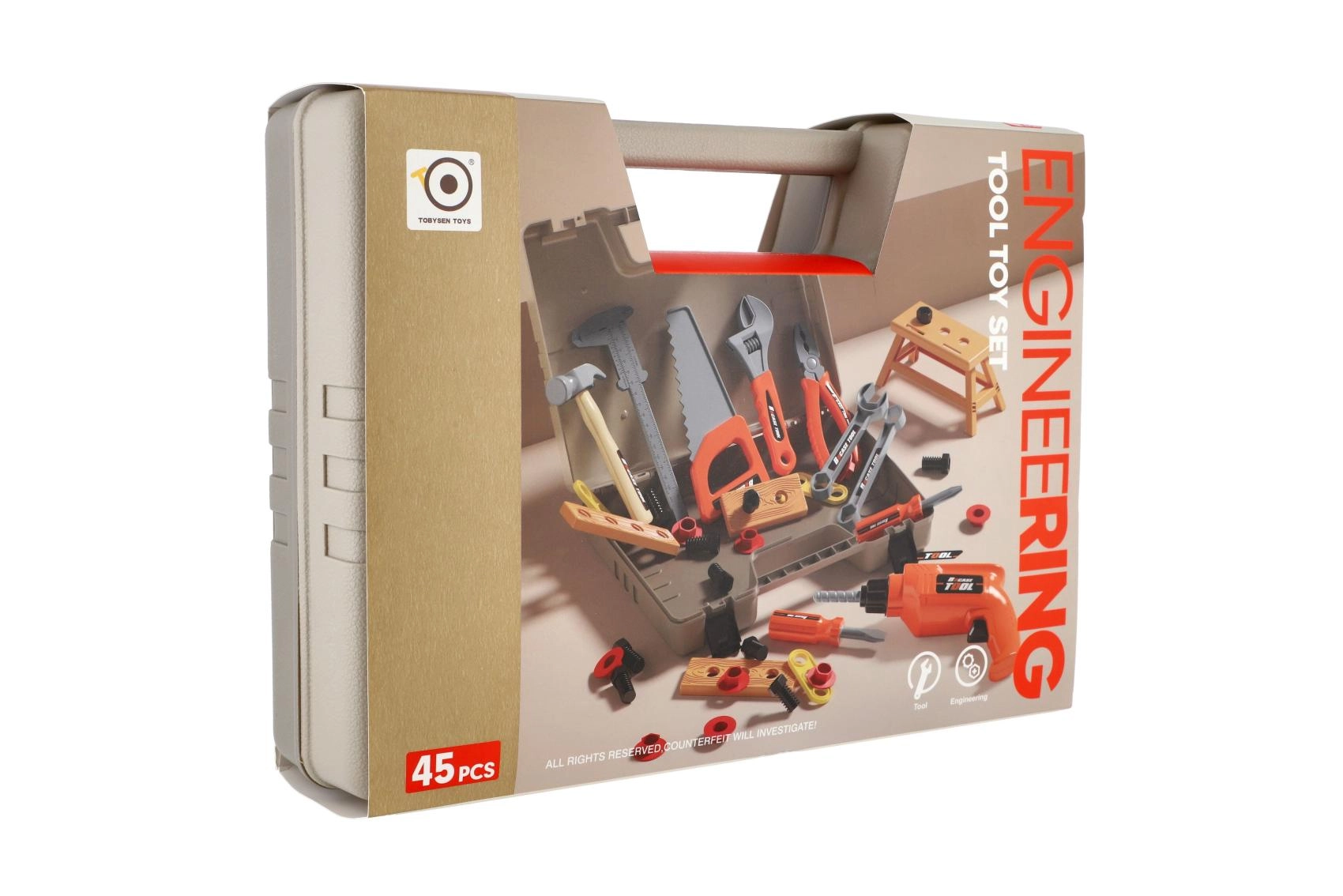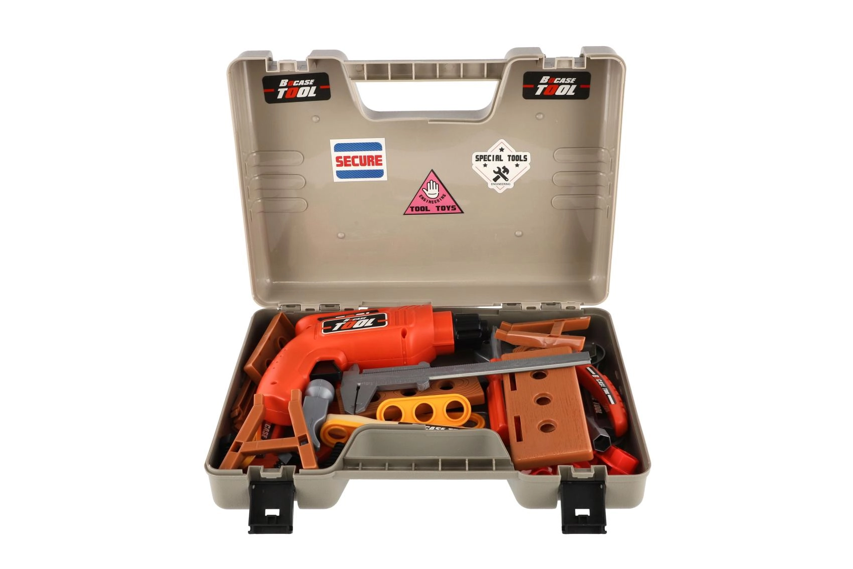 Odporen plastičen kovček s čvrstimi zapirali ohrani vse dele skupaj in otrokom omogoča, da vzamejo orodje s seboj kamorkoli.