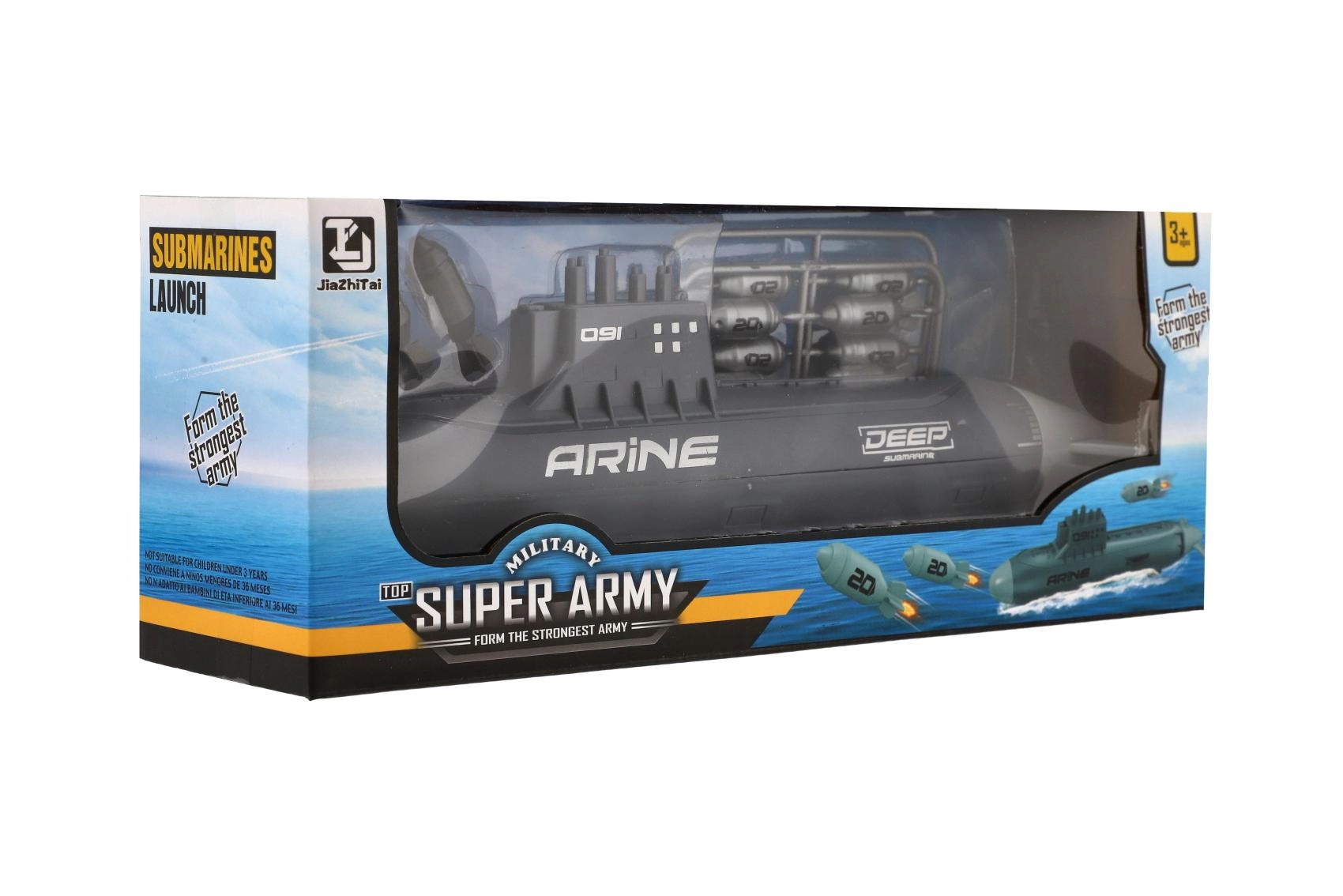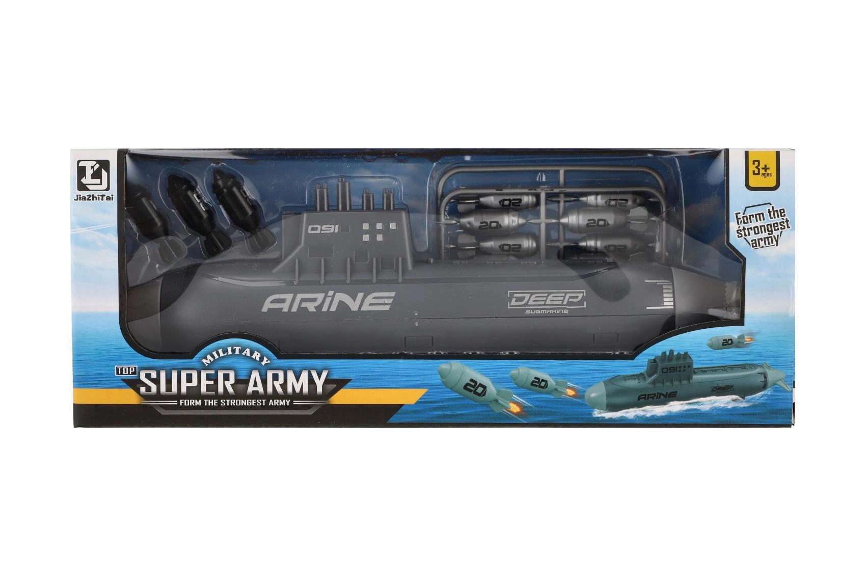 Ta akcijska vojaška podmornica je zasnovana za otroke, ki imajo radi pustolovščine. Pogon z vztrajnikom zagotavlja gladko gibanje naprej, izstreljevalna torpeda pa igri dodajo napetost. Realistični detajli – krmila, stolp s periskopi in oblikovan trup – povečajo pristnost podmorskih misij.