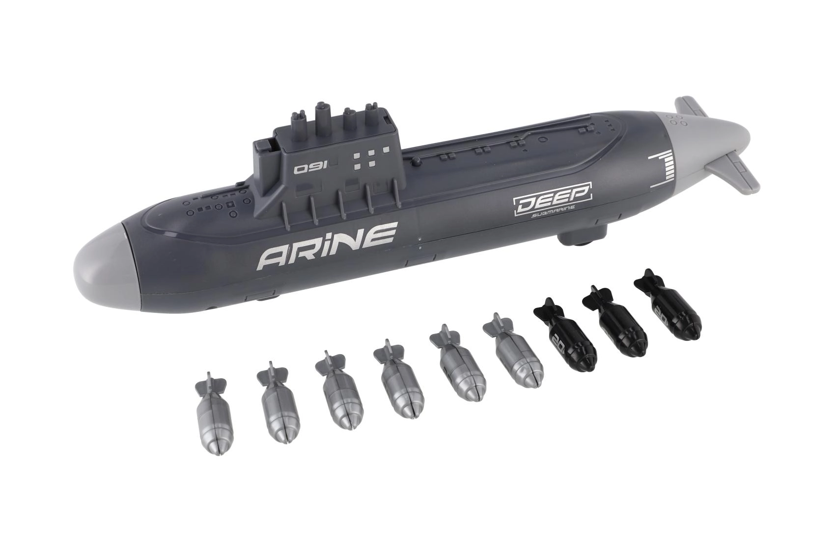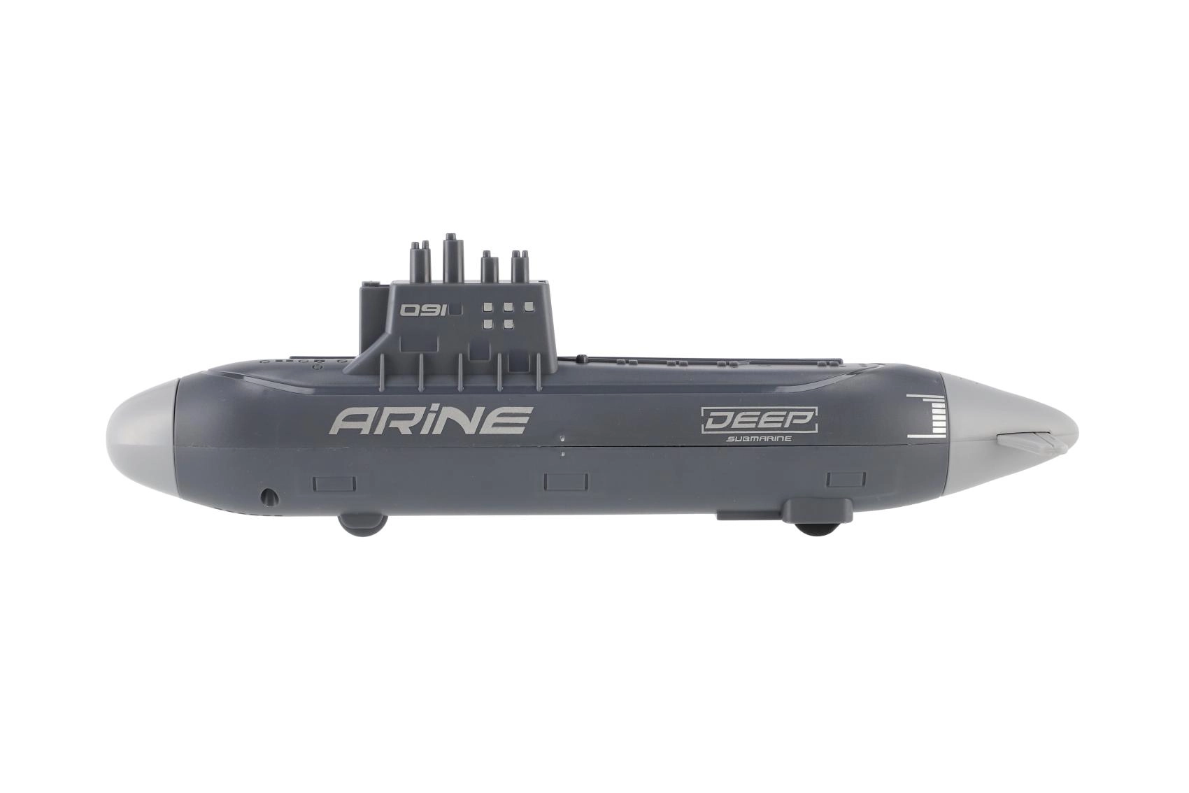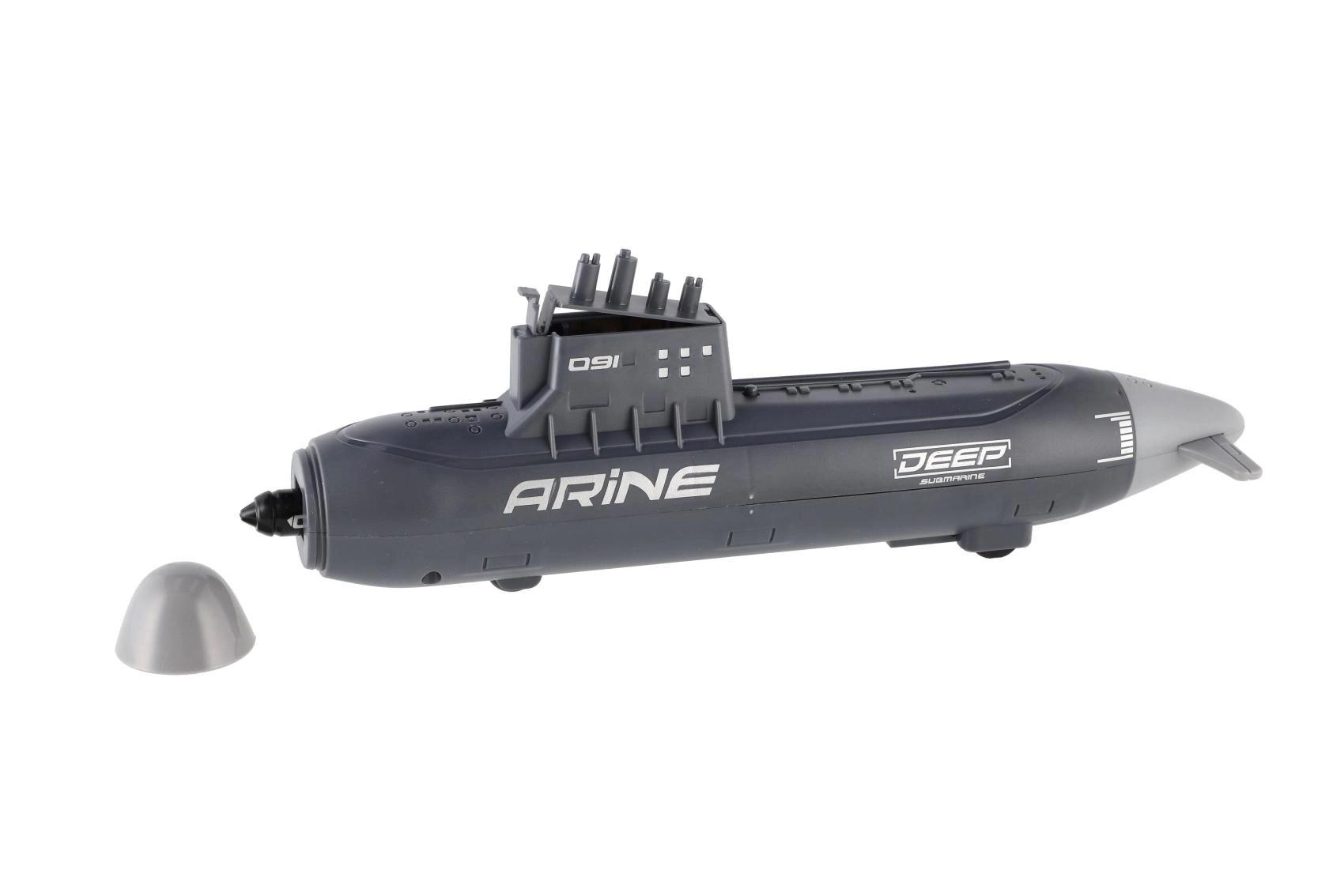 Oblikovan trup, stolp s periskopi in potisk poudarjajo videz podmornice, medtem ko trpežna plastika prenese intenzivno igro.