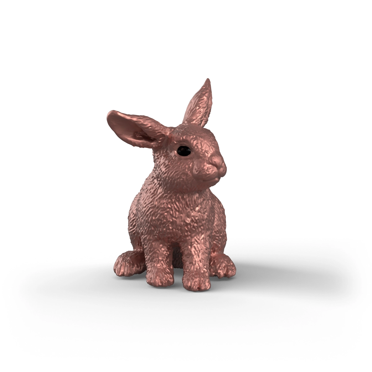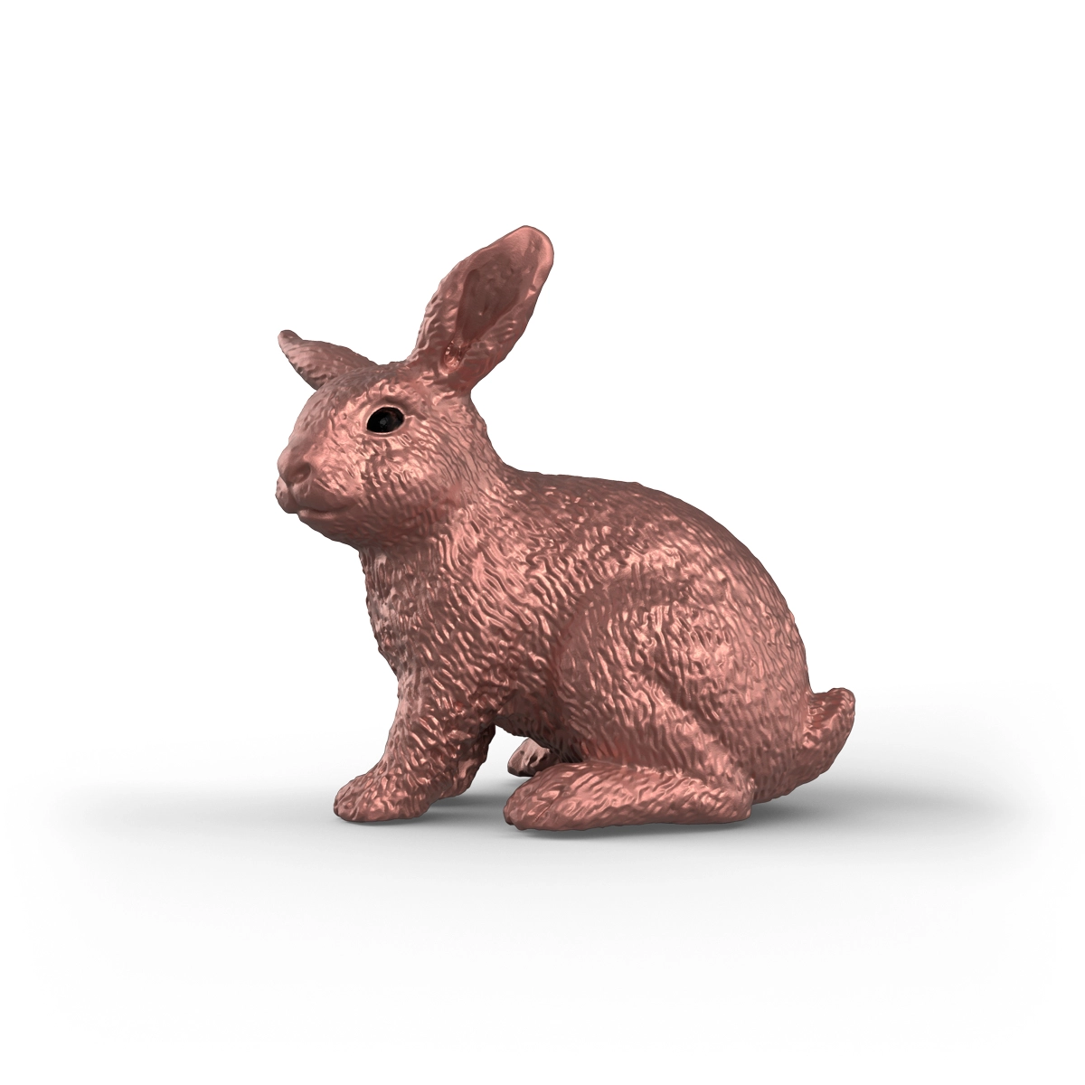 Natančno oblikovana tekstura dlake in eleganten položaj zajčka delujeta naravno in dekorativno.