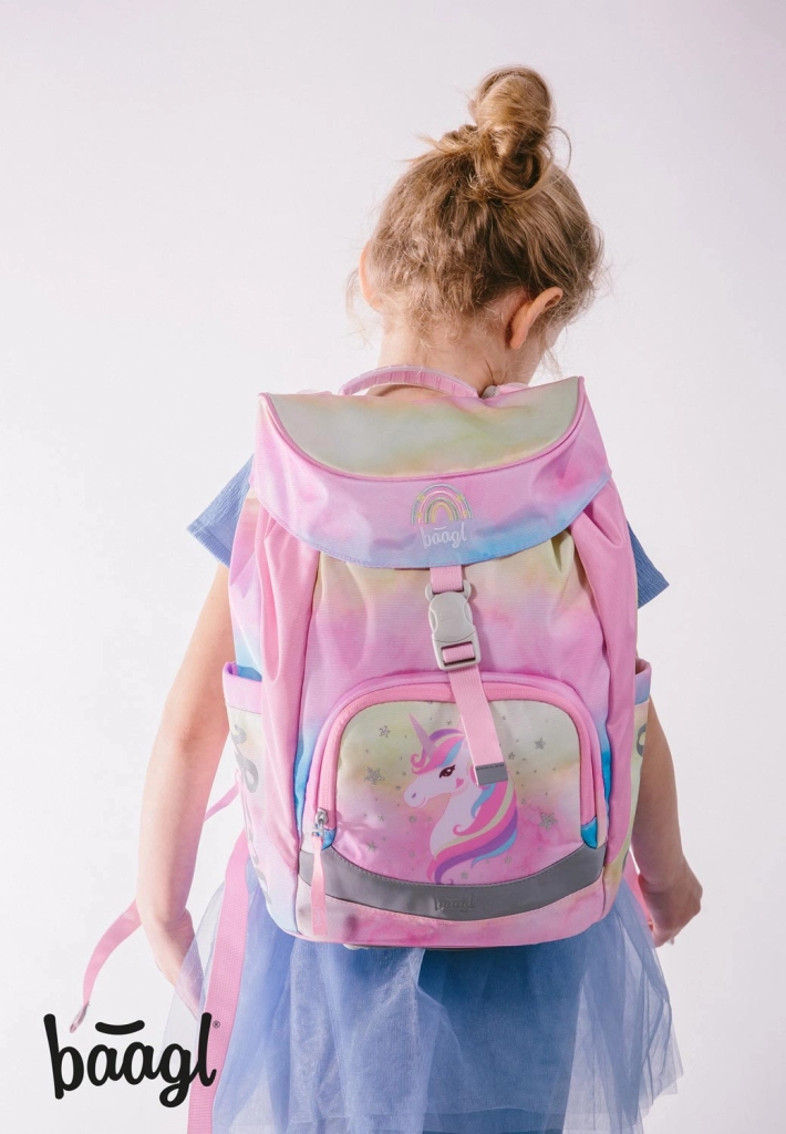Šolski set BAAGL Airy Rainbow Unicorn prinaša lahkotnost, ergonomijo in magičen dizajn v vsak šolski dan. Nahrbtnik AIRY za otroke višine 110–135 cm izstopa z intuitivnim zapiranjem Magnetic Click, zračnim hrbtiščem AIRFLOW ERGO in sistemom popolnoma nastavljivih naramnic s prsnim in ledvenim pasom za enakomerno porazdelitev bremena. Enoprekatna zasnova z jasnim razporedom olajša organizacijo pripomočkov.
