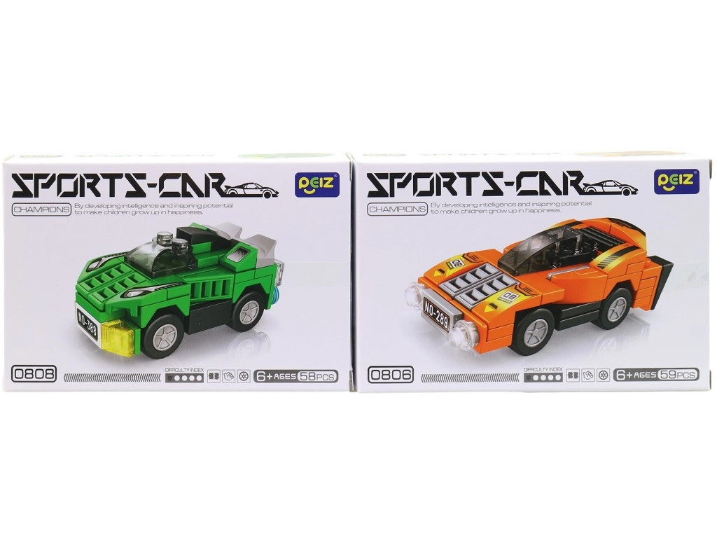 - Gradbeni komplet iz plastičnih kock – mini športni avtomobili