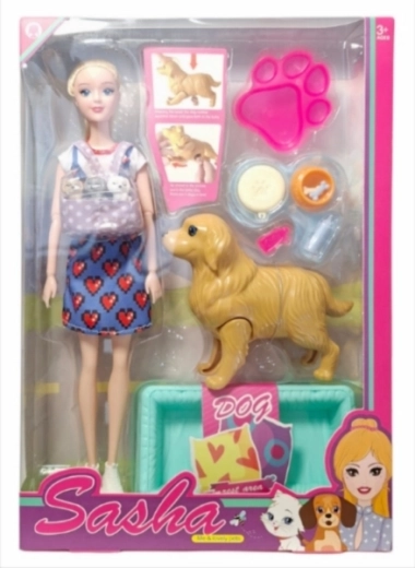Odkrijte čar skrbi za hišne ljubljenčke s tem prikupnim kompletom: punčka, velik pes in mladički, dopolnjeni z negovalnimi dodatki. S pritiskom na glavo psička skoti mladička, kar otrokom prinaša realističen in poučen igralni občutek. Idealno za razvoj empatije, domišljije in fine motorike. Primerno za otroke od 3 let.